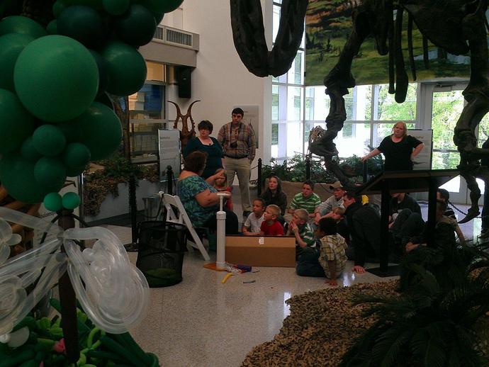If you haven't had a chance to come to the museum and view "Elastic Park", you can stop by today until 7 p.m. to view the 20 foot long, 10 foot high Acrocanthosaurus balloon sculpture and scenery! The sculpture should last through the weekend, but we encourage everyone to view it as soon as possible!